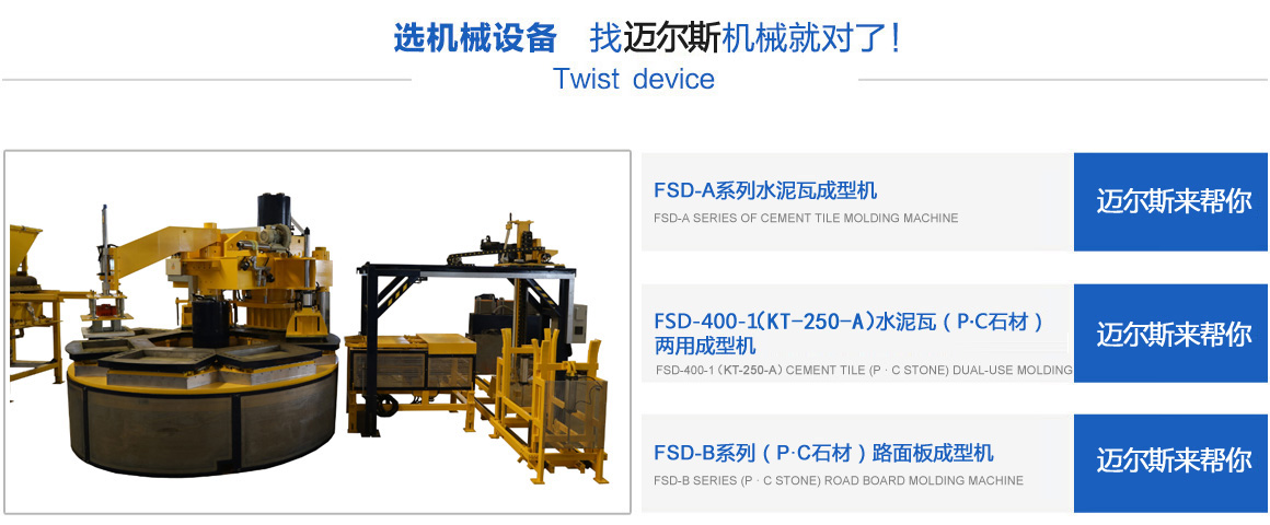 常熟市邁爾斯機械有限公司是一家集研發(fā)、生產(chǎn)、銷售于一體的建材機械高科技企業(yè),其前身為2011年注冊創(chuàng)辦的“常熟市虞山鎮(zhèn)豐順達機械配件廠”,經(jīng)過多年的努力,于2017年注冊成立“常熟市邁爾斯機械有限公司”,專業(yè)生產(chǎn)模壓水泥彩瓦機、P.C石材機、轉(zhuǎn)盤式成型機、彩色路面磚機等綠色建材設(shè)備。公司以市場為龍頭,以技術(shù)為導向,開發(fā)了系列化、標準化的適銷對路的機械產(chǎn)品,并且注冊了多項國家專利技術(shù),銷售范圍覆蓋全國,并且出口越南、老撾等東南亞和其它國家。
